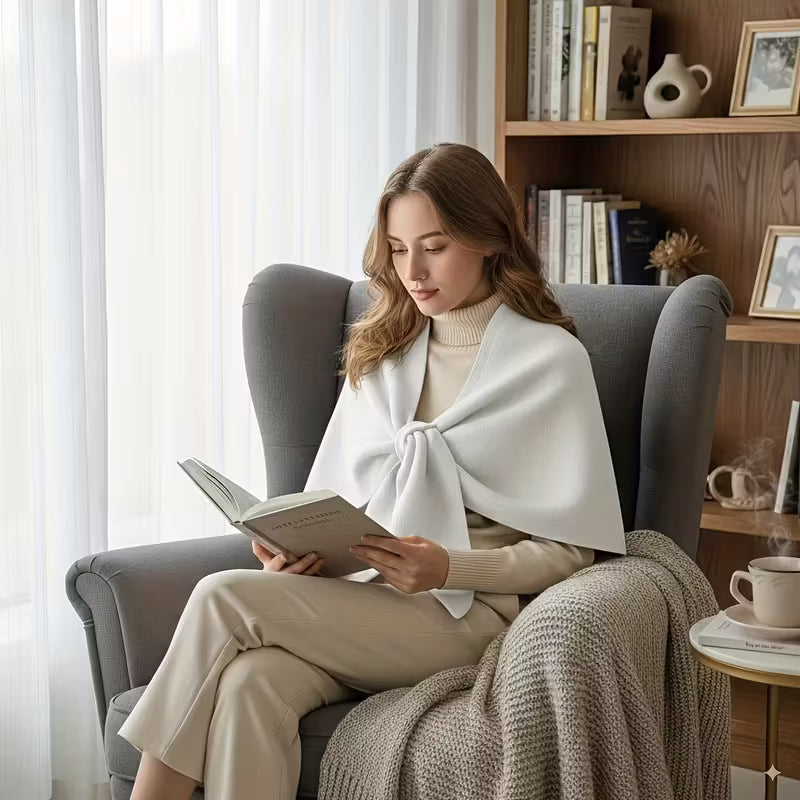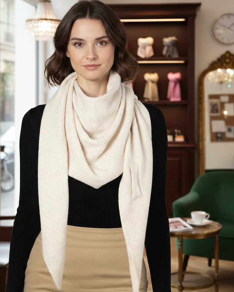 Elle peut se porter de multiples façons, comme une écharpe ou un châle, ce qui la rend polyvalente et tendance en toute saison hivernale.