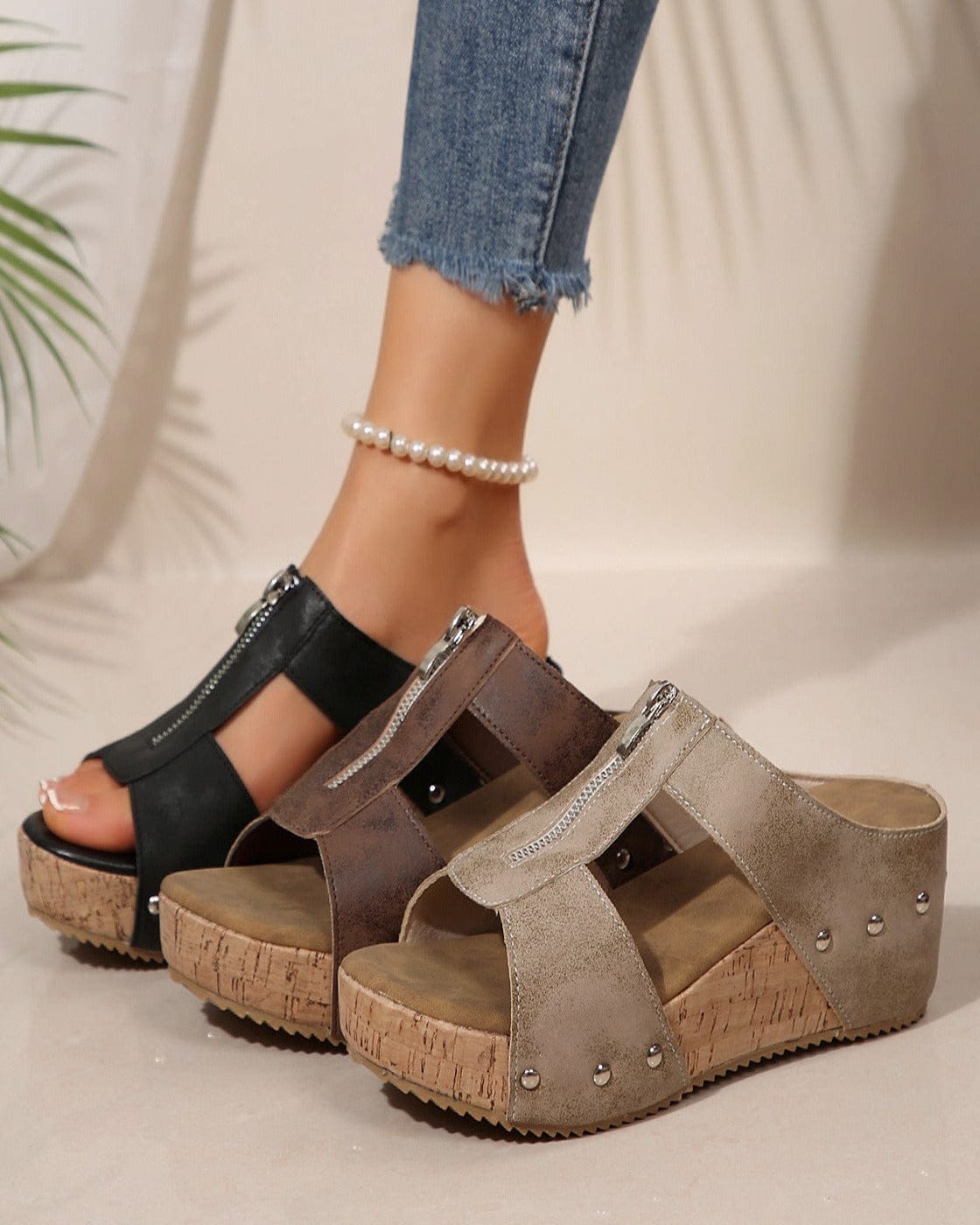 Sandale compensée à bout ouvert